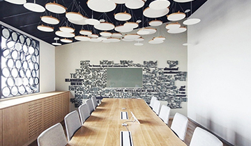 來自紐約的BBDO廣告公司裝修實景圖,用燈飾和木板打造出辦公室設計裝修…
